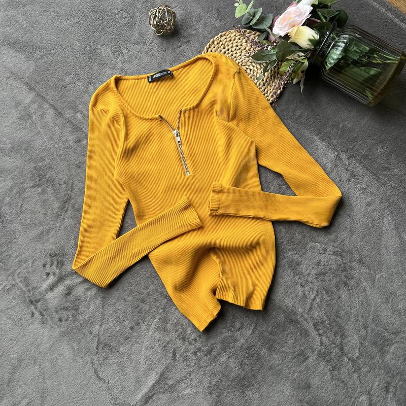 FB sister підходить на розмір S-М Лонгслів в рубчик з блискавкою, добре тягнеться Довжина 50 см Пог 35 см тягнеться до 58 см