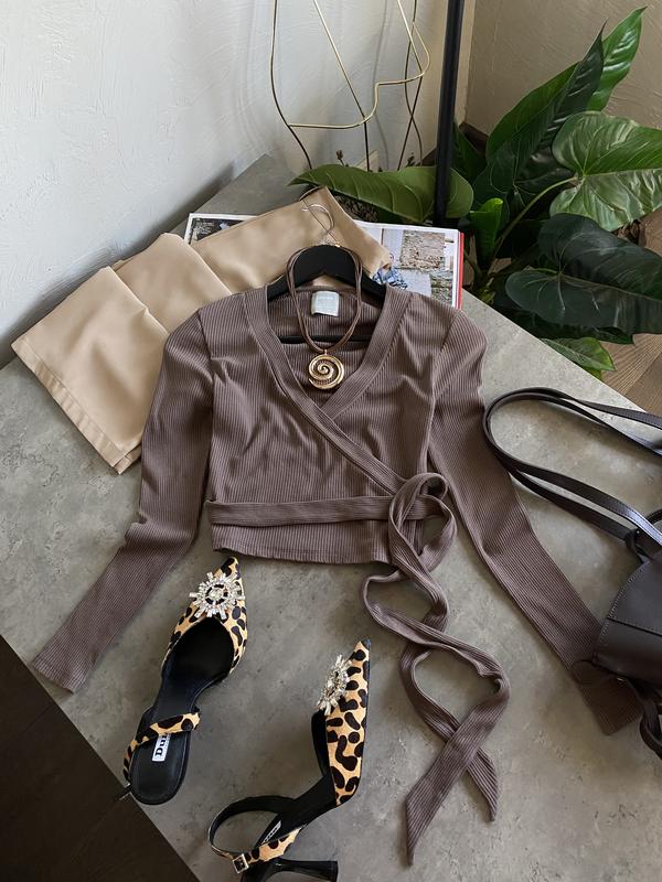 Кофта жіноча в рубчик на зав’язці шоколадного кольору, Розмір XS Пог 36 см. Довжина 42 см. Стан ідеальний.