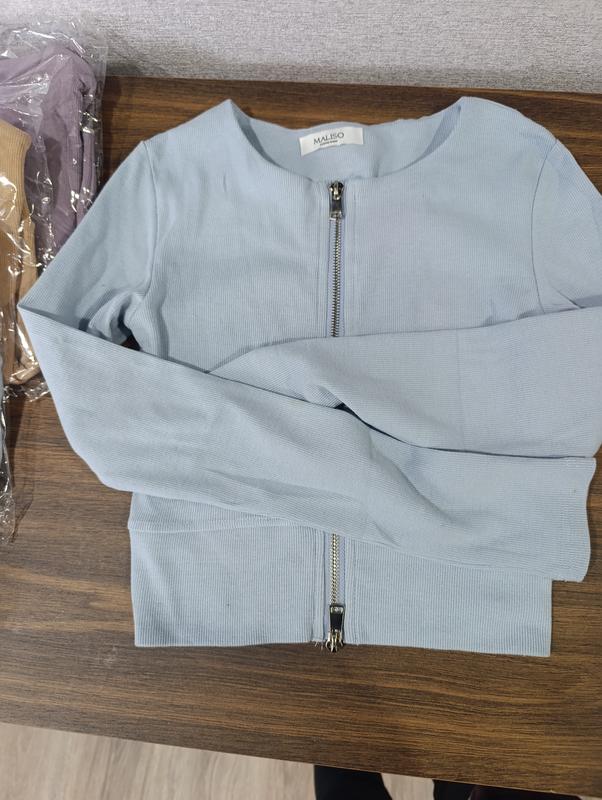 Регульована блискавка з обох сторін. Склад: 90% котон, 10% спандекс. довжина - 42см. груди -36см. плечі - 34см. рукав -62см.