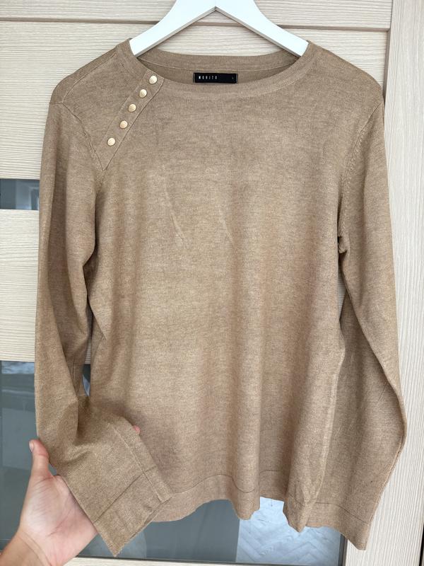 Подовжена кофта пісочного кольору Без дефектів Розмір L Довжина 65 см Напівобхват грудей: 50 см Напівобхват таліі: 47 см Золоті ґудзики