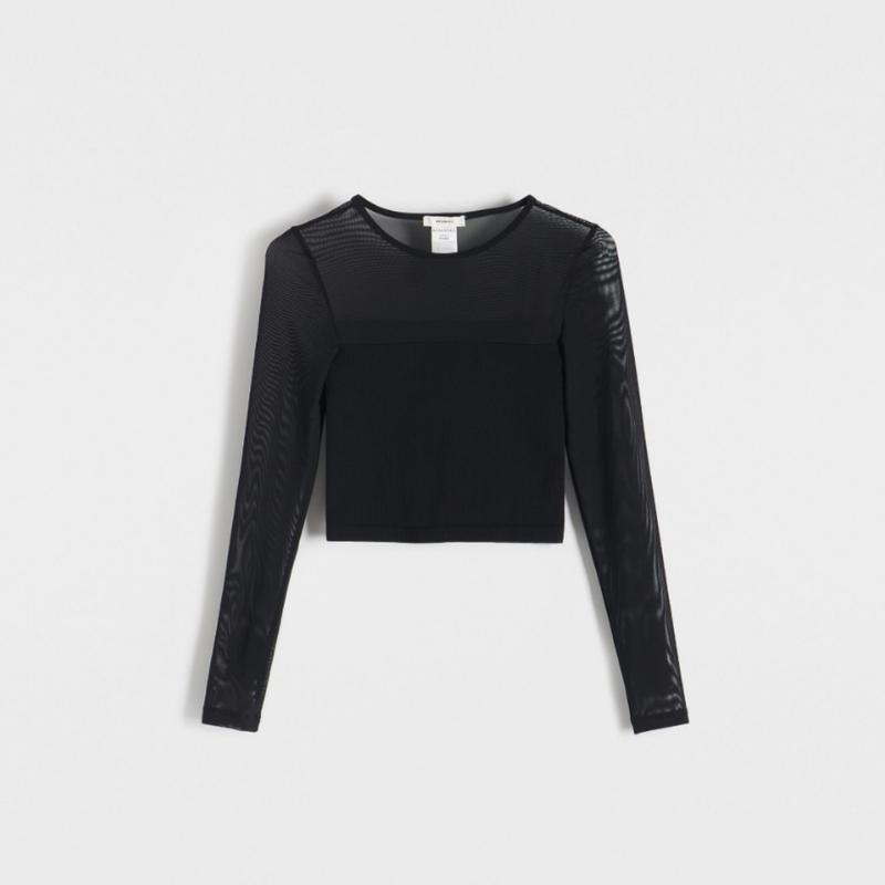 Чорний лонгслів з сіткою ▫️ Стильний жіночий лонгслів з довгим рукавом ▫️ Верхня частина та рукава виконані з прозорої сіточки ▫️ Базова вставка по грудях для комфортного носіння ▫️ Еластичний, приємний до тіла матеріал ▫️ Добре поєднується з джинсами, штанами або спідницею ▫️ Ідеальний для стильних повсякденних або вечірніх образів ▫️ Стан відмінний Розмір XS-S. Довжина: 41 см. Довжина рукава від плеча: 66 см. Ширина: 31 см. Обхват грудей: 32 см.