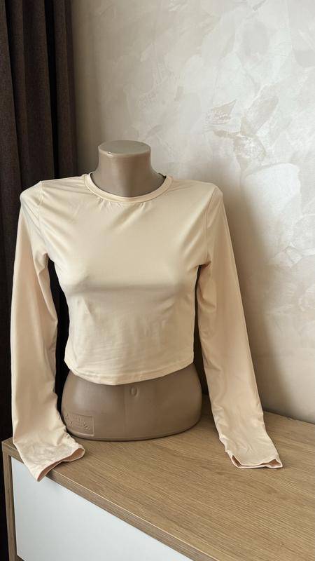 Красивий базовий бежевий жіночий лонгслів Розмір: S Склад: 95% поліестер 5% еластан Тканина приємна та гарно тягнеться Стан: новий, без бірки Довжина: 42 см ПОГ: 40 см Плечі: 32 см Довжина рукава: 61 см