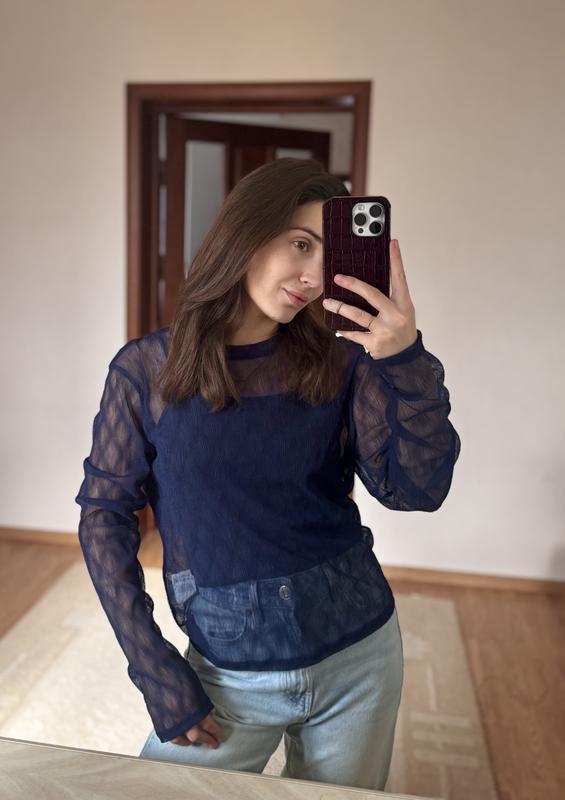 Лонг в темному синьому кольорі в сітку , дуже класна модель