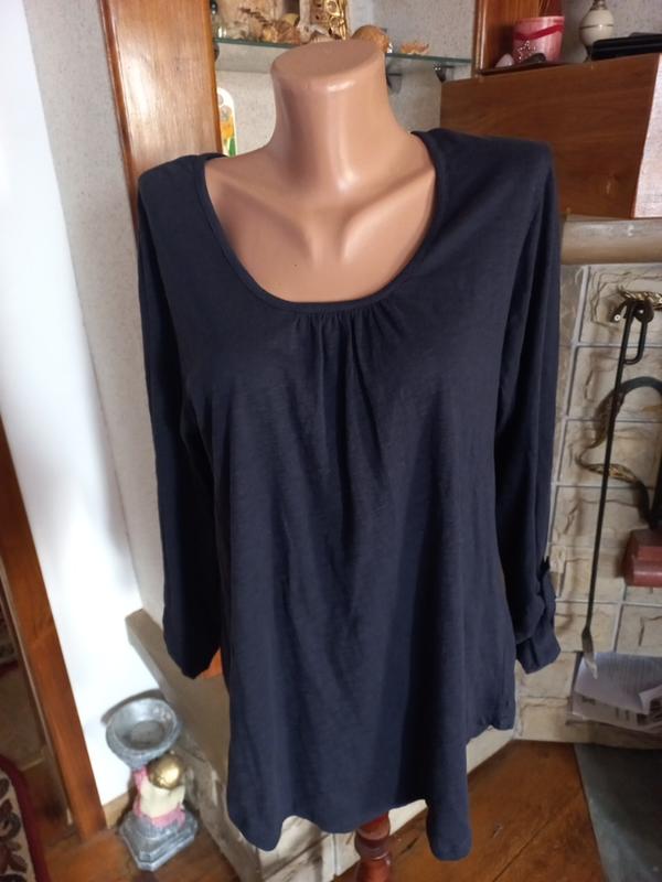 Натуральная кофта, перед и зад удлиненные, рукав регулируется, темно-синего цвета. Размер в наличии один, указанный американский 14, но указатель по нескольким, дойка того, чтобы ориентироваться по замерам: пог 52 см, поб 55 см, длина позади 74 см, бока 63 см, длина полного рукава (без загиба) 62 см. Ответим на все вопросы.