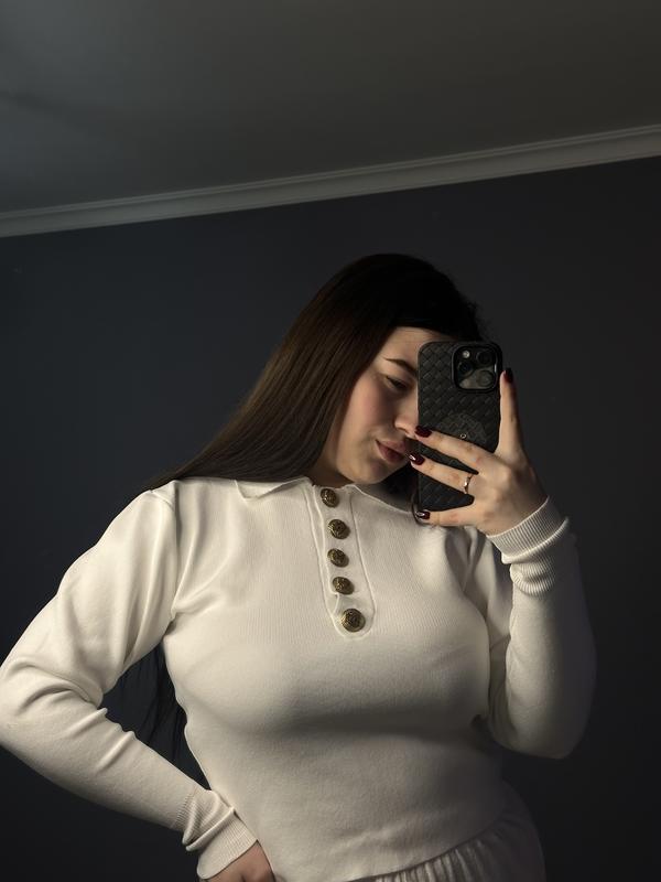 Білий лонг у стилі old money 🤍 Елегантний і стриманий, з комірцем і великими золотими ґудзиками. Ідеальний для більш офіційного, вишуканого образу.