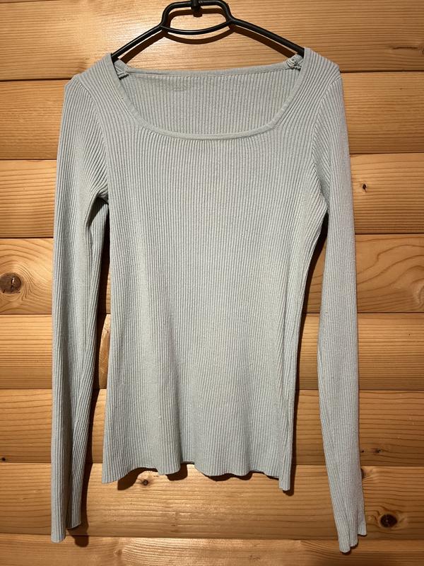 Лонгслів м'ятного кольору, більш насичений, ніж на фото, тканина приємна до тіла, м'яка. Розмір S,крій приталений, лягає по фігурі.
