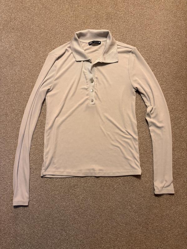 Стильна базова річ - поло-лонгслів з акцентними ґудзиками. М, стан ідеальний тоненька приємна тканина в рубчик