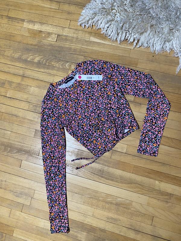 Новий лонгслів топ жіночий квітковий принт із затяжками tally weijl
