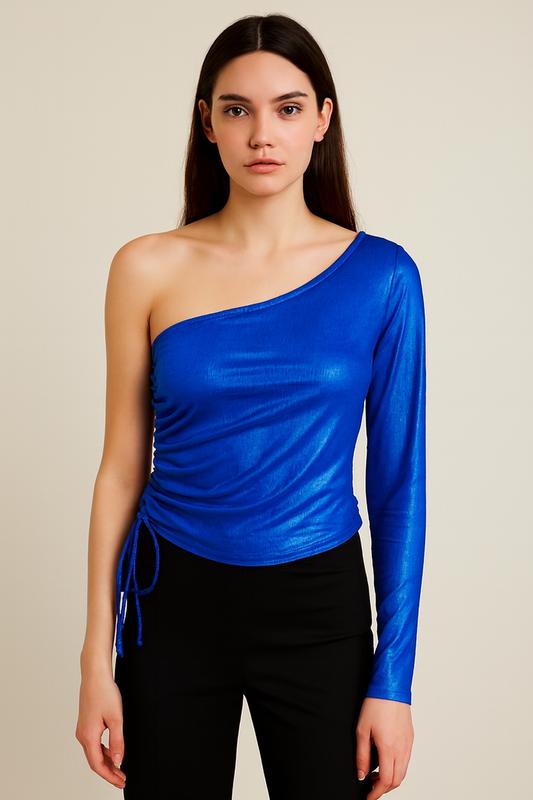 яскрава кофта на одне плече збогу драпіювання добре тягнеться підійде на М розмір
