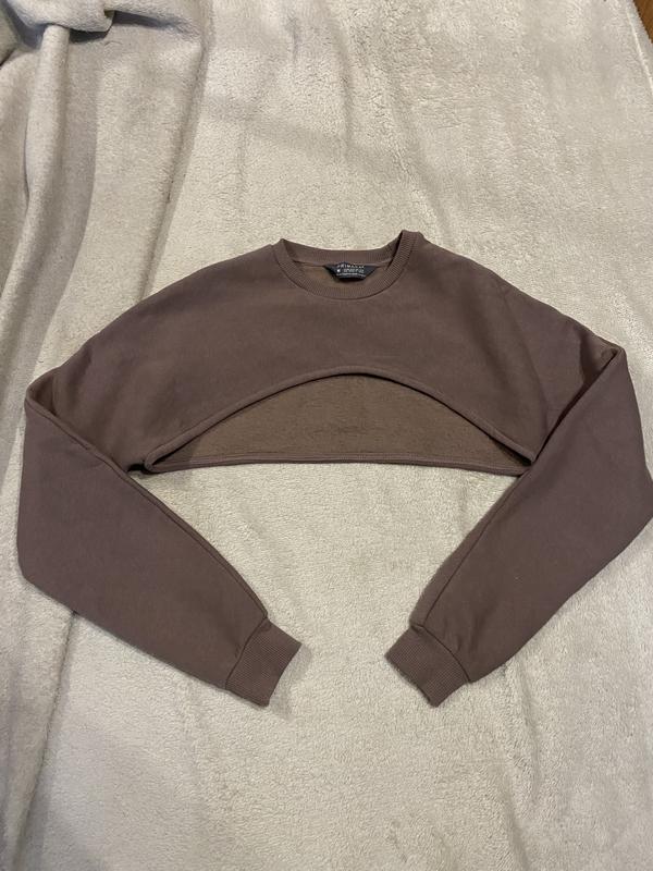 Кроп топ об’ємні рукави на флісі утеплений оверсайз мокко шоколадний primark