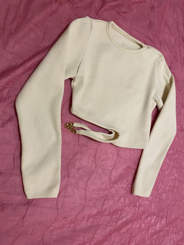 Топ з дліним рукавом, та золотистою цепочкою збоку на талії🌸 розмір -s-m Заміри скину в приватні повідомлення❤️
