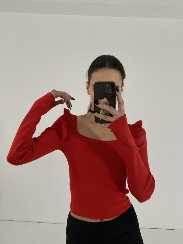 ❗️РОЗПРОДАЖ ЗАЛИШКІВ ЗІ СКЛАДУ❗️ Вʼязана червона кофтина з рюшами, підходить на розмір XS/S