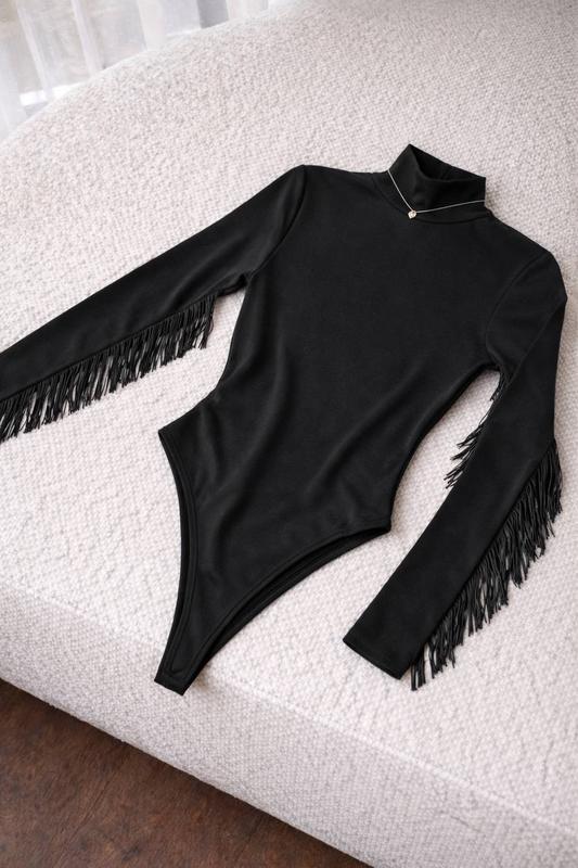 🩷 В НАЯВНОСТІ Боді Мод: 262 Розмір: 42-44,46-48 Тканина: віскоза на флісі Кольори: чорний Ціна 760 грн Якість відмінна 🔥 М’який , теплесенький та дуже приємний на дотик боді стане найулюбленішою річю в твоєму гардеробі 👗 ♥️ Рукав прикрашений бахромою .