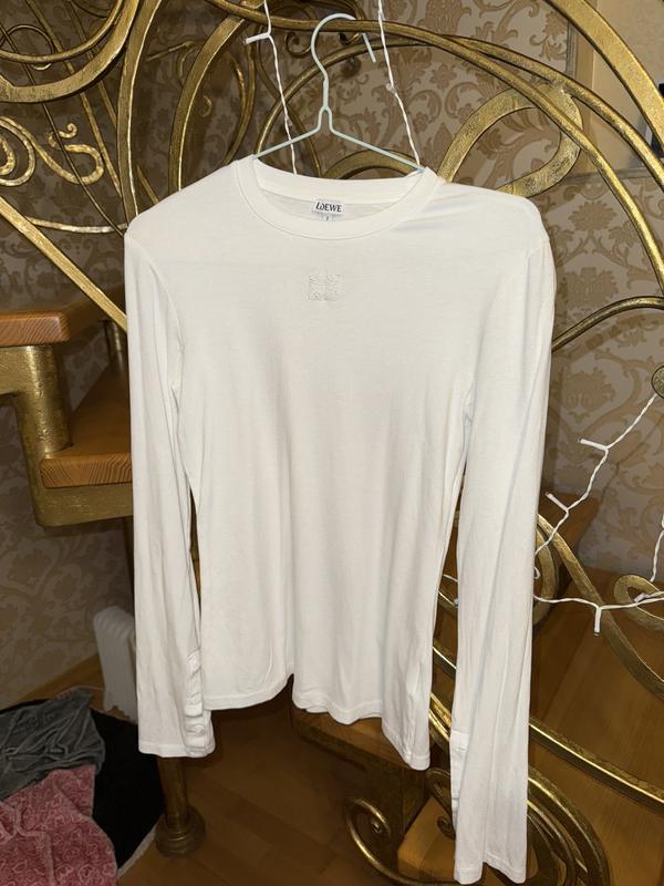 Лонгслів Loewe, розмір S-M, тканина тягнеться дуже, також трішки просвічує, коли вдягаєте білизну, вона буде помітна. Дуже рідко його вдягала, в гарному стані