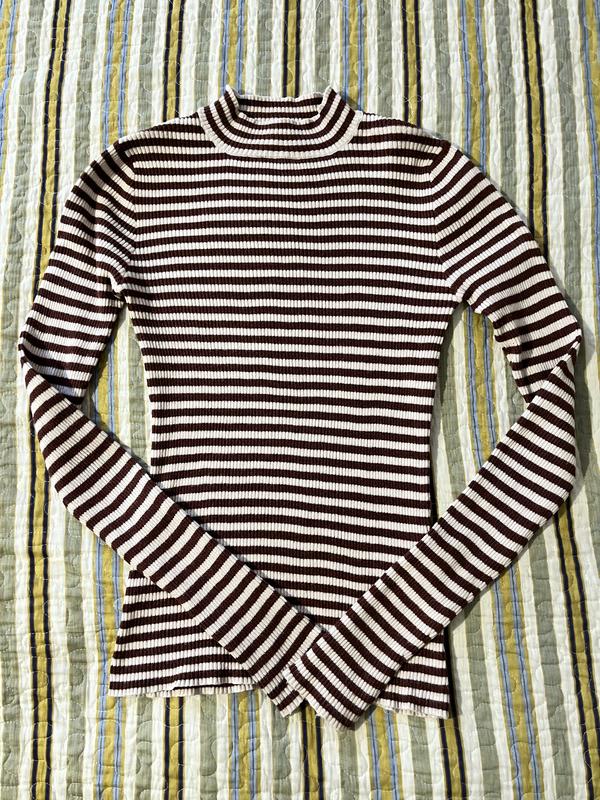 Жіночий лонгслів у розмірі -с-м У молочному і кавовому кольорі Дуже гарна довжина рукава, що зазвичай велика рідкість! Дуже стильно під піджак, класичні брюки Дуже приємна тканина, мʼякенька