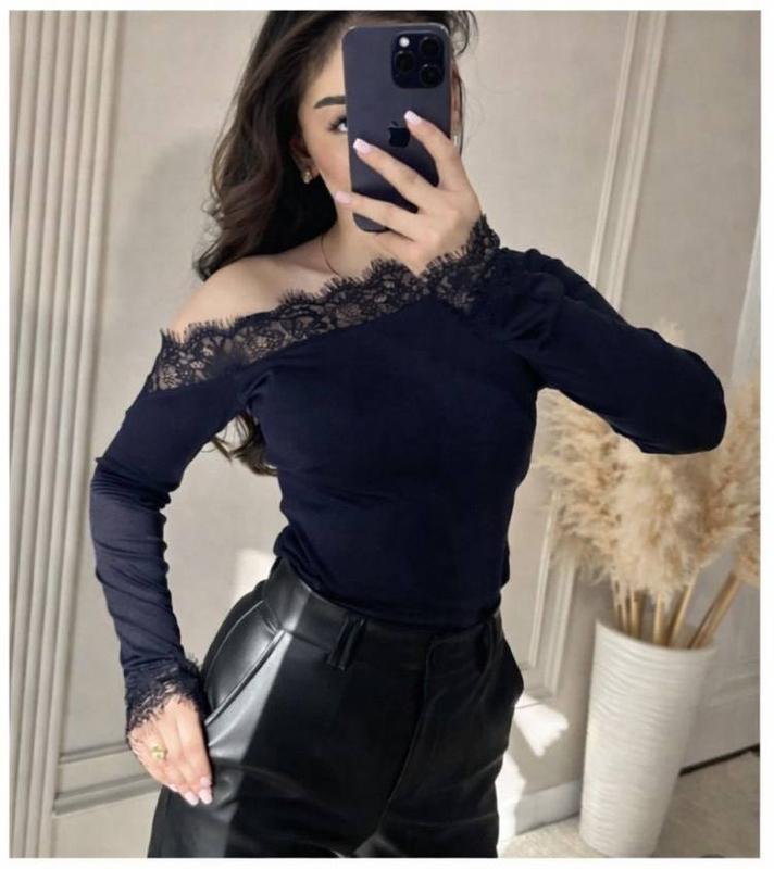 Лонгслів з мереживом Модель 959 Розмір: 42/46 48/52 Тканина: трикотаж Ойшо Туреччина 🇹🇷 та французьке мереживо(дизайн може змінюватися) Ідеальна тканина, максимально приємна до тіла, має високий коефіцієнт розтягнення, тому ідеально сідає по тілу. Гарно переться, не втрачає колір і форму Елегантний лонгслів із мереживом Витончена модель, що поєднує в собі лаконічність повсякденного стилю та романтичні акценти. Ця кофта стане головною окрасою вашого образу, додаючи йому жіночності та шарму. Універсальність: Ідеально комбінується з джинсами (як на фото), класичними брюками або спідницями-олівець. Колір: чорний та білий Ціна 650 грн Ідеальна якість та дизайн