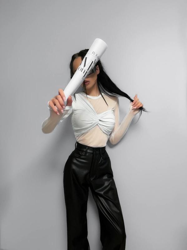 Лонгслів🥰 Мод: 1492-1036 Розмір: 42-44, 44-46 Колір: чорний Тканина: сітка + віскоза Ціна- 709 грн🔥