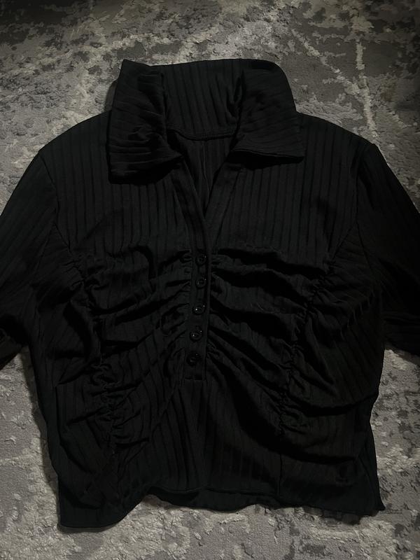 Лонг з зтяжками на грудях, якісь супер - добре тягнеться. Можна і на М бо трохи маломірить. Як нова, ні разу не вдягалась