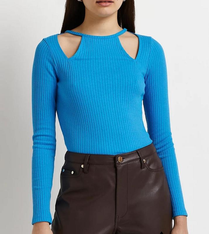 жіночна лонгслів в рубчик з виризами на грудях довжина 58 см ПОГ 42 см тягнеться плече 9 см рукав 63 см