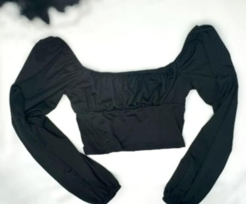 Чорний топ з рукавами — стильна та практична річ для будь-якого гардеробу. Має акуратний крій, який красиво підкреслює фігуру. Завдяки універсальному кольору легко поєднується з джинсами, спідницями чи класичними брюками. Розмір:xs-s,за деталями звертайтеся у дірект📩