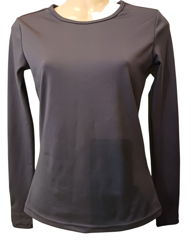 жіночий лонгслів від MI.LABEL.BRAND, розмір XS-S (футболка з довгими рукавами) темно-сірого або графітового кольору. Такі моделі часто використовуються як базовий шар одягу, для занять спортом і інше
