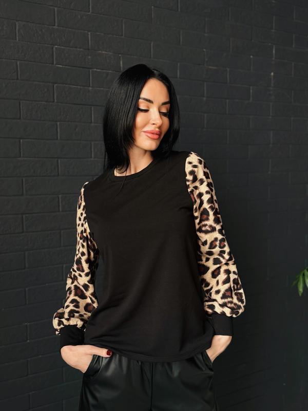 Леопардова кофтинка — це безпрограшне поєднання трендового стилю та стабільного продажу. Саме ті позиції, які не просто прикрашають асортимент, а реально працюють на результат. Актуальний принт, легка стилізація й високий попит зроблять свою справу — результат не змусить себе чекати Стильна жіноча кофтинка з леопардовими рукавами "Alberta" +ВЕЛИКІ РОЗМІРИ Арт.: 4723 ✔️Комфортний напіввільний крій ✔️Ефектні рукави з леопардовим принтом ✔️Практичні якісні матеріали Ціна :765 UAH 🌈Колір:чорний, капучино, шоколадний ✂️Розмір: 42-44, 46-48, 50-52, 54-56 🧵Матеріал: двонитка, софт 📐Виміри: Довжина:64 см Довжина рукава:59,59,59,63 см Напівобсяг грудей:41,44,50,56 см