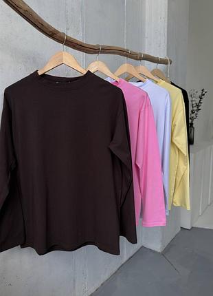 Хіт продажу🔥 Лонгслів 💔 Мод: 739 сд ▪️Розмір: 42-46(oversize) ▪️Тканина: якісний турецький кулір ▪️Колір: рожевий, лимонний, чорний, білий, шоколадний та темно синій (!)темно синій колір з тканини: лакоста Базовий лонгслів вільного крою, виконаний з якісної тканини😍 Річ, яка прослужить не один рік, перевірено🔥 📌Заміри 42-46: Довжина по спинці - 70 см Ширина - 55 см Рукав від горловини - 72 см Від шва - 57 см