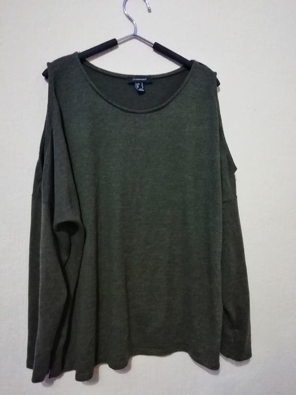 Туніка/футболка довгий рукав. Хакі. Трикотаж, віскоза. Розмір L/XL. Відкриті плечі. Дуже гарно сидить.