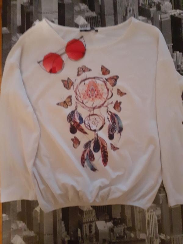 Кофточка Latynka молочного кольору. Рукав регулюється ( можна носити в звичайному вигляді, а можна загортати і фіксувати на гудзики). На резинці. Принт - "Ловець Снів". Розмір М-L. Додаткові питання і фото - в повідомленнях.
