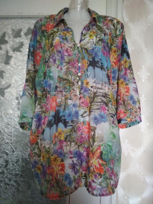 Гламурна туніка,100% cotton, ( Марлевка). (батальний розмір). Виробництво -Німеччина.Презентабельна модель. Легка,дуже ефектна, за бокам0 mo by розрізи. Плечі - 43,5 ПОГ -73 ПОБІДИ - 75 Довжина - 78 Рукав :довжина - 46,5 (три чверті) Ширина біцепса -23,5 Ширина по низу рукава -15 манжетки на гудзику , можна підняти на хлястик.
