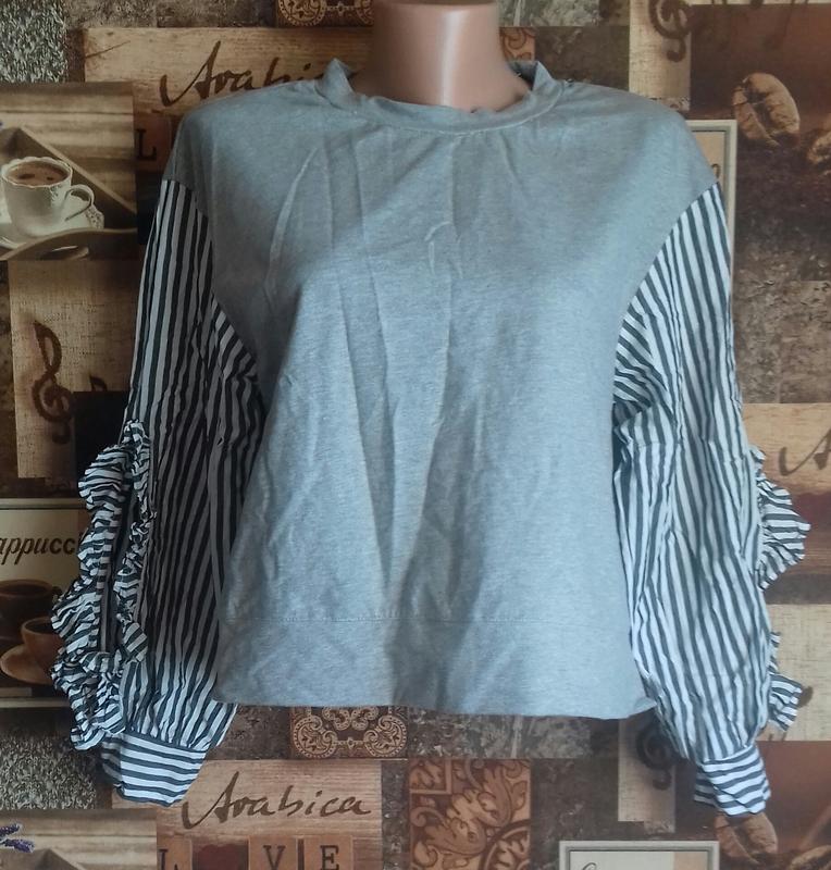 Поту,сорочка,кофта,р. S/36,з незвичайної форми рукавами,сделаана в Італії.Заміри:пог-52см,по пл. швах-48см,довжина-56см,дл.рукава-53см.90%бавовна,7%поліестер,3%еластан. Відправлю Новою поштою або Укрпоштою,після повної або часткової передоплати(150 грн.),на моно або приватбанк.