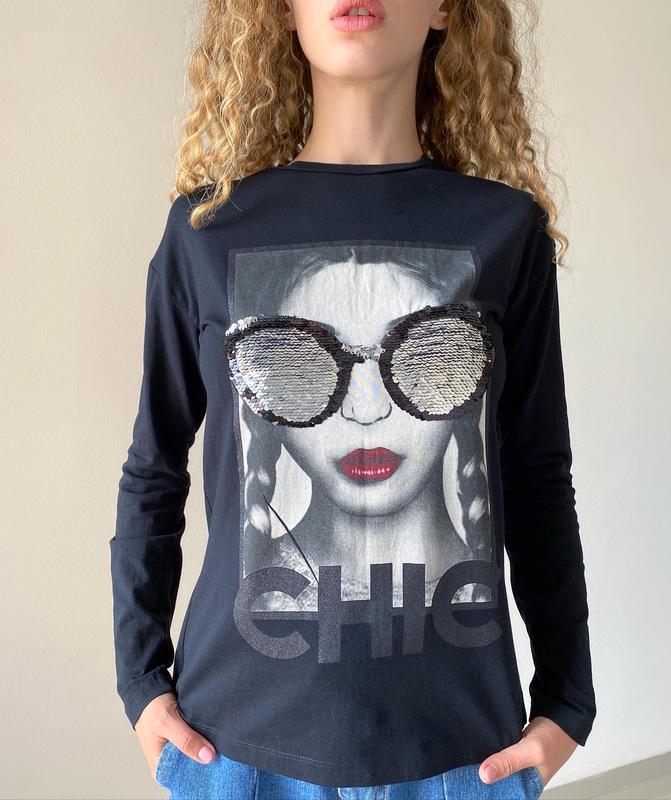 Лонгслив с пайетками 🖤 Размер S 95% коттон, 5% эластан Ширина по плечам- 48 см ПО груди- 45 см ПО талии- 39 см ПО бёдер- 44 см Приспущенный рукав Длина изделия- 61 см Новая!!!🤩
