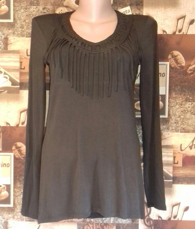 Блузка лонгслив з бахромою Marc Aurel,pM/38,склад:98%віскоза,2%еластан,прямий крій,тканина тягнеться.Заміри:пог-48 см,пот-46см,низ-52см,рукав-56см,довжина-70см.Сушка горизонтальна,т. к. залишається слід від мотузки або прищіпок до слід.прання.
