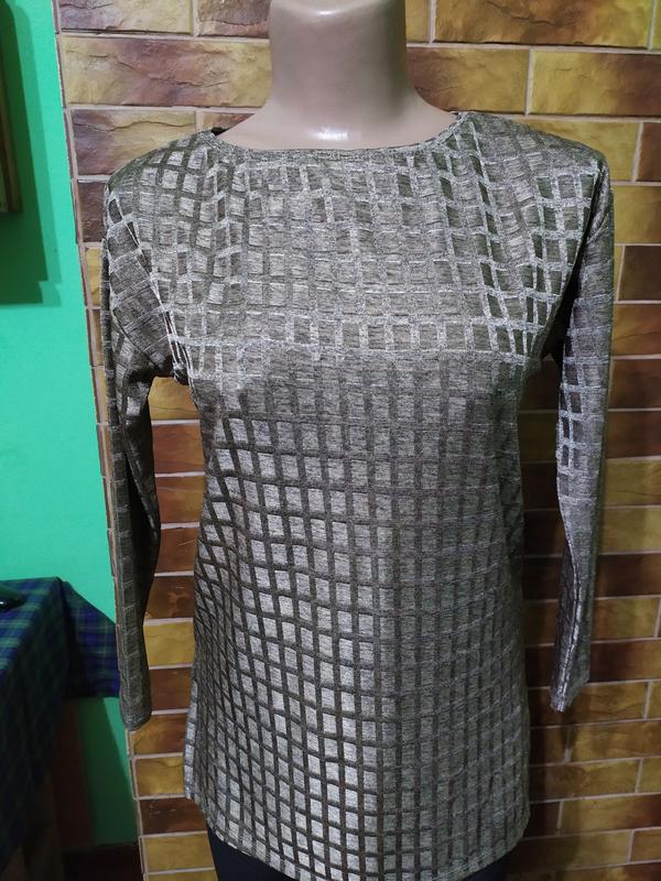 Туніка золотистого кольору, оверсайз, прямого крою, рукав 3/4, красиво струмує, спинка довше, трошки тягнеться з боків розрізи. Заміри: Плечі - 49см Ширина - 50см Рукав - 43 см Довжина ззаду - 73см Перед - 63див