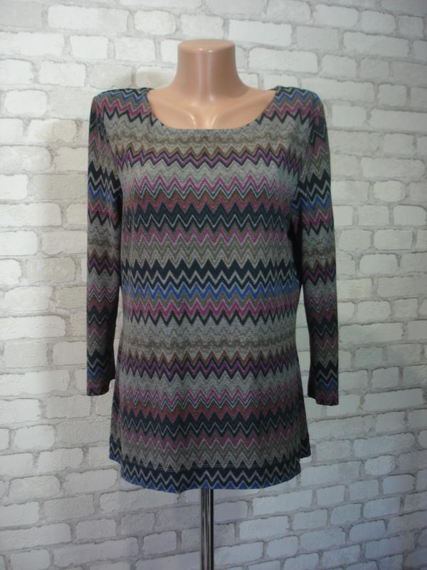 Лонгслив "Betty Barclay" viscose + elastane ( тканина легка ,добре тягнеться , рукав спускний-7\8 ) Ширина плеча 43 см ПОГ 48 см ПОТ 43 см ПОБІДИ 44 см Довжина рукава від горловини 57 см(рукав 7\8) Довжина спинки 60 см стан хороший (внутрішня бирка зрізана )