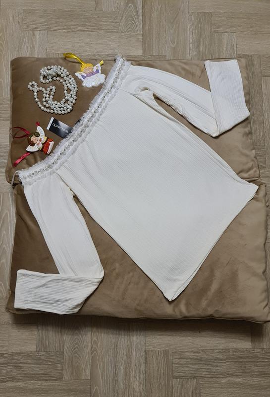 Легенька кофточка на плечі, тканина в рубчик, колір айворі, тягнеться, всі камінчики і бусіни на місці