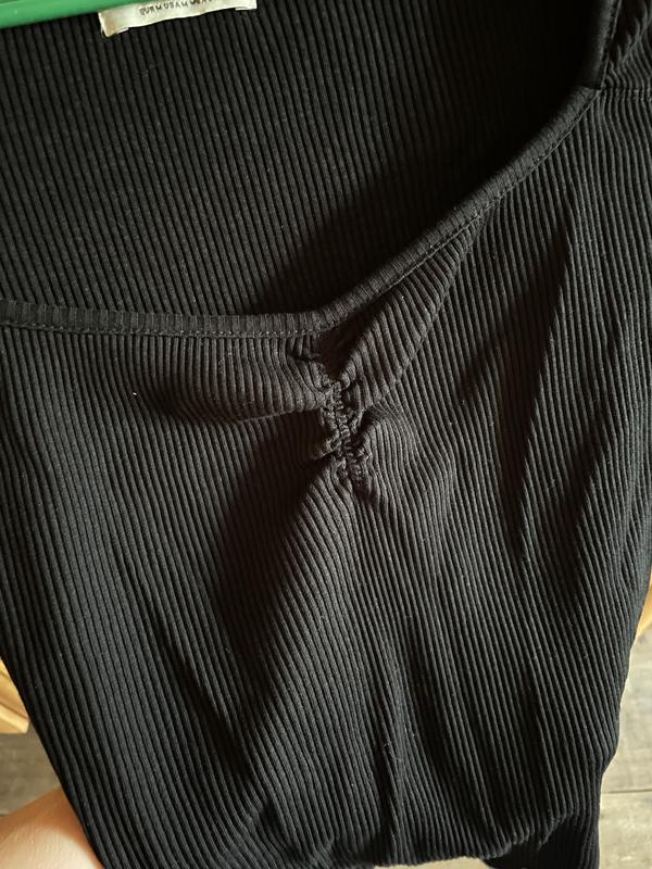 Колір: чорний Матеріал: 63% поліестер, 32% віскоза 5% еластан; рубчик З цікавою жаткою на грудях, що робить їх більш тендітними