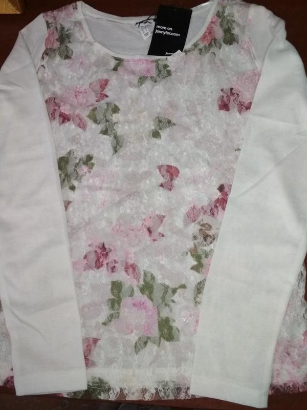 Жіноча ошатна кофта від французького бренду Jennifer. Перед - гіпюровий. Розмір S. Мірки в нерозтягнутому стані: ширина - 47см, довжина - 60см.