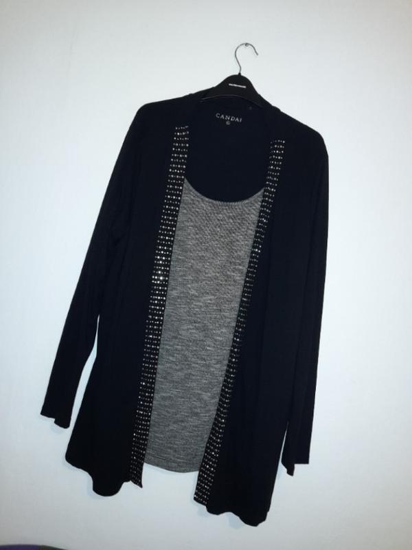 Кофточка накидка, внутри сделано маечкой серого цвета. Кофточка украшена паетками, очень нарядно и стильно смотрится.👍 Состояние идеальное, стоит размер ХЛ Смотрите мерки Длина 78=79 см Плечи 45 см Рукав 67 см ПОГ 61 см ПОТ 59 см ПОБ 68 см Кофточка немного тянется Смотрите мои другие объявления Отправка Укр или Новой почтой Оплата на карту Приватбанка