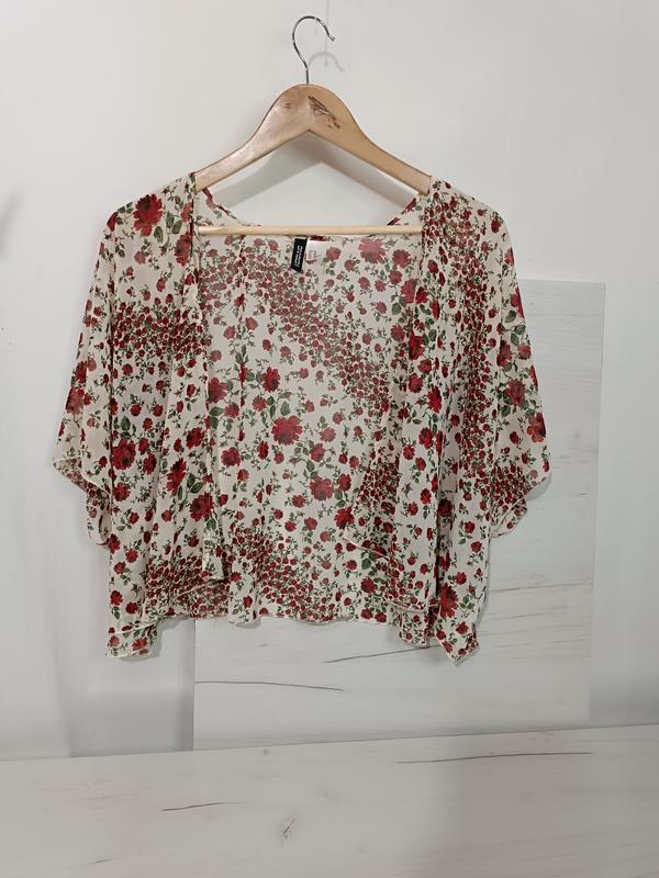 Шифонова накидка, розлітайка білого кольору з квітковим принтом Розмір зазначений XS , але підійде і на більший 👉 ЦІНА ДІЙСНА ПРИ ПОКУПЦІ ТОВАРІВ НА СУМУ ВІД 50 ГРН👈