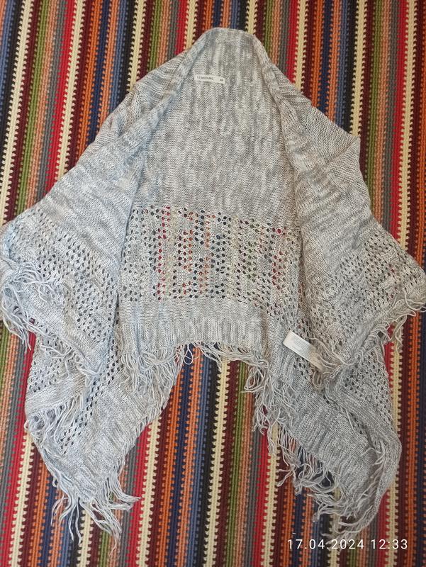 Очень классная кофта, для весенних дней и летних вечеров. Приятная на ощупь, спереди кофта удлинена, застежек или пояса не имеет. По низу - узор в дырочку. Стан идеален. Длина по спинке 55см, рукав 55 см., самая длинная частичка по переду 70см
