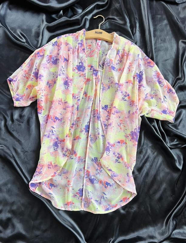Шифонове кімоно оверсайз Ocean Club Нове без паперової бірки Чудова річ на купальник, на топ, прикрити плечі від сонця Розмір 34/36 ( XS/S ) це умовно, крій оверсайз, застібок немає, рукава летюча миша, тому одягнете легенько до XL Як такових замірів теж немає Довжина позаду 85 ( перед заокруглений ) Груди по спині до 65 450 грн