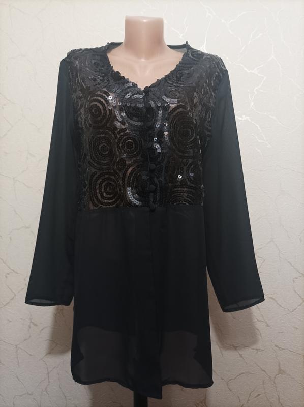 Безпечною оплатою через нову пошту не відправляю, тільки Укрпоштою довжина 75/79 пог 50 пот 52 поб 58 плечі 42 рукав 57 По боках розрізи висотою 20 см Є дві незначні затяжки ( 2 останні фото)