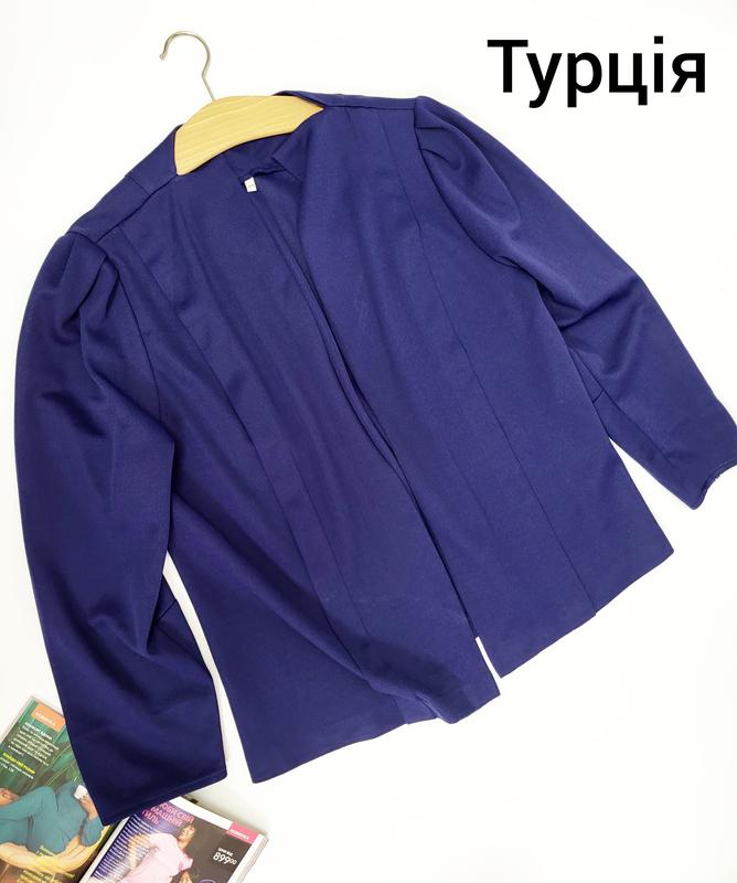 Жіноча синя накидка-піджак з середнім рукавом від турецького бренду Розмір XL (44) Заміри: довжина піджака від плеча 67 см, довжина рукава 55 см, півобхват грудей 50 см Матеріал: 100%-поліестер 🧥Накидка: ✨️ Якісний ✨️Стильний ✨️Зручний ✨️Низька ціна 🎁При Замовленні від 3-х речей🛍, ви отримуєте від мене безкоштовну 📦доставку Новою Поштою😉