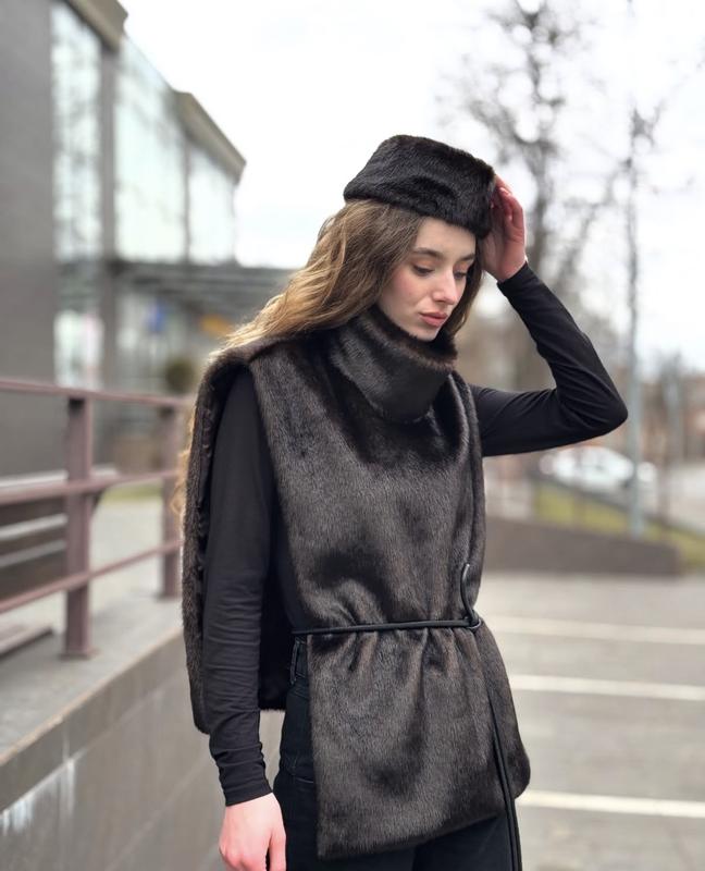 Продам нову маніжку із штучного хутра Нова - укр бренд Дуже гарно виглядає, хутро під норку Розмір S Заміри: довжина спереду - 54, ззаду - 56 Горловина - 28
