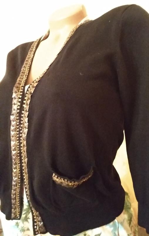 мила чорна кофточка соригинальной обробкою і двома маленькими кишеньками, довжина виробу-50см.ПОГ-45см.довжина рукава-45(три чверті)
