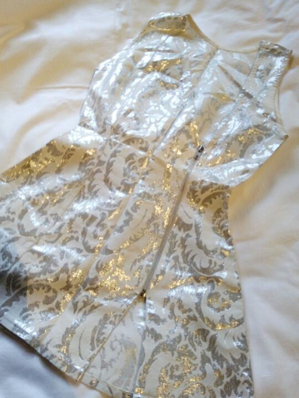 Жилетка біла срібляста з малюнком. Бирки немає, состояние новой. Из тонкої парчі змійка не посередині, а збоку. Шита ідеально по фігурі, дивіться мірки. Довжина 74 см ПОТ 32 см ПОГ 44-45 см ( в грудях) ПОБІДИ 48 см Отправка Укр или Новой почтой Оплата на карту Приватбанка