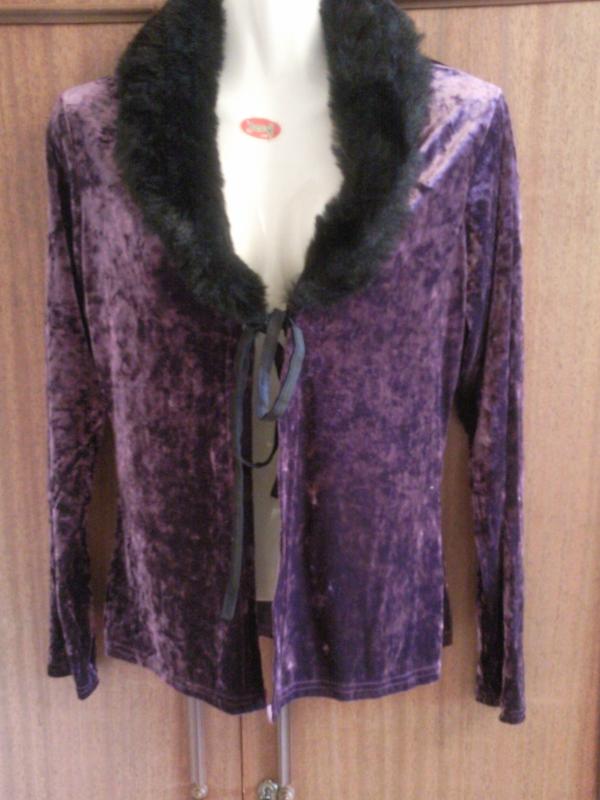 Кофта дуже красивого бузкового кольору,на фото спотворений колір,тканина-велюр,комір штучне -чорного кольору ,кофта у відмінному стані.