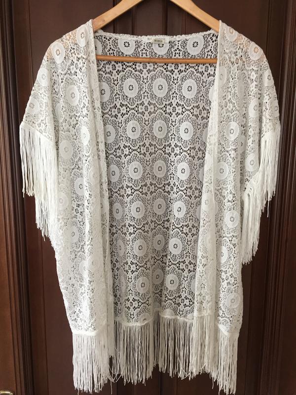Очень изящная и удобная накидка белого цвета. Подойдёт как на пляж так и на каждый день 😉💐Пишите по дополнительным вопросам, с удовольствием Вам отвечу ☺️