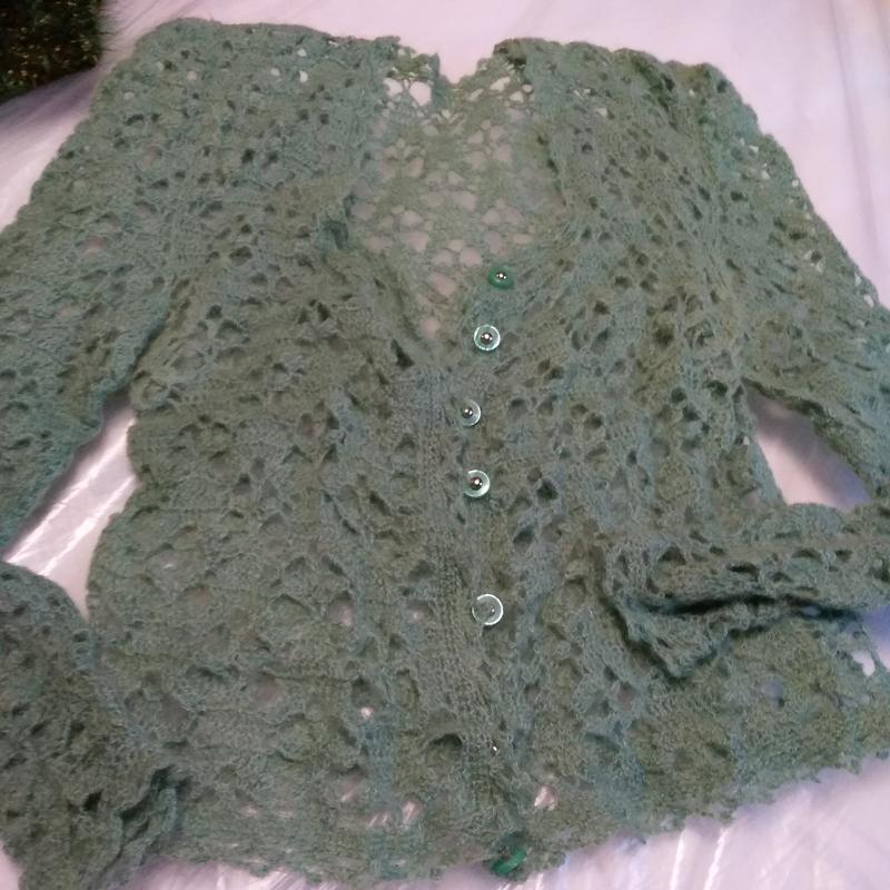 продам кофту накидку оригінальний фасон. кофточка пов'язана з тонкого мохеру, не колеться, легка повітряна але в той же час тепла, колір приємний зелений підійде в будь гардероб, зручно брати з собою місце займає мало не мнеться і завжди буде на підхваті у прохолоду.